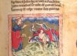 The miniature illuminating the text about Emorroris is based on the most fantastic part of the story and shows the serpent with a precious stone in the forehead, which lies coiled in its hiding place, and the charmer luring it out of the burrow.